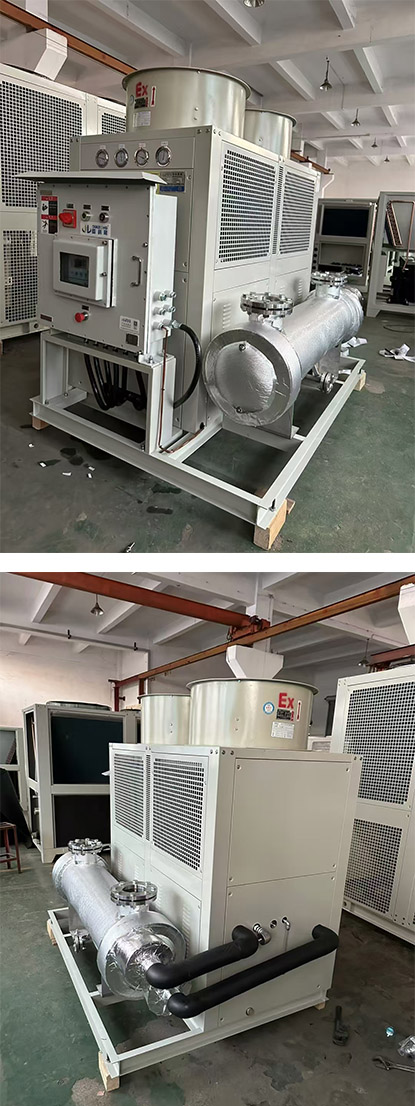 在沼氣發(fā)電系統(tǒng)中,冷水機(jī)扮演著至關(guān)重要的角色,主要用于控制發(fā)電過程中關(guān)鍵設(shè)備的溫度,確保系統(tǒng)高效、穩(wěn)定運(yùn)行。以下是沼氣發(fā)電中使用冷水機(jī)的主要原因: